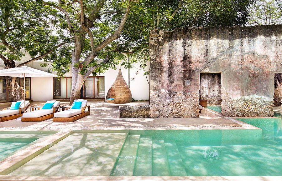 The hotel feels more like a friend’s pristine hacienda sitting at the edge of the most beautiful beach. The story here dates back to the 1970s, when the Mexican architect Jose Luis Moreno found the virgin beach 25 miles south of Cancun, which was then empty of resorts. He built his dream house and you can still feel the magic of the 1970s in the air. Well-known interior designer, Tara Bernard continued Moreno’s work with local Mayan craftspeople bringing in weavers, ceramicists, wood carvers and artist from all over Mexico.